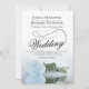 Denna vackra bröllopsinbjudan innehåller ett strålande foto av ett enda, glansigt, ljusblått eller dammigt blått färgad ro som ljuger på sin sida och reflekterar i bassäng i vatten med vågar och gevär. Utformningen har ett kalligrafiskt skript i finare med ett långt kort svan skapar det både modernt och klassiskt. Elegant, sofistikerad och chic till inbjudan för dina vänner och din familj till på din speciella dag. Kortets baksida är ett marmorerat blått grått färg med en plush mönster.