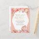 Njut av denna eleganta, höstliga, blommande bebis shower för en babyflicka. Rosa, korall och gula blommor med en svagt rosa bakgrund. Pumpa sitter längst ner till höger. Mallar tillhandahålls på både framsida och baksida. Returadressmall på baksidan med en annan pumpa och blommor under pumpan.