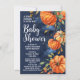 Elegant- och klassfärgsdamminbjudan till babyduschen i stil med orange pumpor på mörkens blå bakgrund. Gästerna i inbjudan i en halloween, höstskörden pumpar in babyduschen för pojke eller barn med denna vackra, moderna anpassningsbar tryckta inbjudan. Snyggt anpassningsbar generativ ai-grafik med information om personligens babyduschhändelse i party.