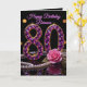 Celebrate her milestone 80th birthday with this luxurious and glamorous design. The cover features a stunning, oversized number "80" designed to look like encrusted purple amethyst gemstones set in gold. The sophisticated black background highlights the sparkling jewel effect, accompanied by a delicate pink rose and a classic string of pearls. The inside features a heartfelt sentiment that compares her to a rare gem, which you can easily modify with your own special message.