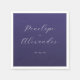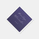 This elegant wedding napkin design features a sophisticated layout with a deep purple background and white text. The names are displayed in an elaborate cursive script, while the word "AND" is set in a simple sans-serif font, creating a balanced contrast. Below, a minimalist date format adds a modern touch to the classic style. The overall mood is refined and formal, perfect for celebrating your special day with a touch of timeless elegance.