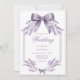 Elegant Purple Floral & Bow Wedding Invitation Inbjudningar