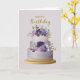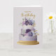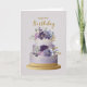 Elegant Purple & Gold Floral Birthday Cake Kort