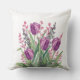 Elegant, Purple Tulip Flowers Pattern Purple Stri Kudde