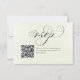 Tidlös och elegant svarskort för bröllop med vacker kalligrafiskrift och en praktisk QR-kod för enkla online-svar. Designat med mjuka neutrala toner och en minimalistisk layout, är detta kort perfekt för klassiska, romantiska eller moderna bröllop. Ett stilrent sätt att förenkla gästernas svar samtidigt som din bröllopsbrevpapperssvit hålls sammanhängande och förfinad. Helt anpassningsbart för att matcha din speciella dag.