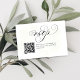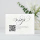 Sofistikerat och tidlöst svarskort för bröllop med elegant kalligrafi och en modern QR-kod för enkla online-svar. Designat med mjuka neutrala toner och subtila blommiga accenter, denna minimalistiska layout är perfekt för klassiska, romantiska eller moderna bröllop. Ett vackert och bekvämt sätt för gästerna att svara snabbt samtidigt som din brevpapperssvit hålls sammanhängande och stilren.