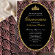 This elegant pink and black art deco quinceanera invitation has pink arches, a gold tiara crown, and a gold glitter oval with a personalizable template to create your own message. The invitation template is customizable in the listing editor and is also available as a digital download that's printable after you personalize it.