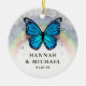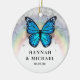 Elegant Rainbow Template Blue Butterfly Bröllop Julgransprydnad Keramik