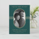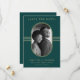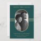 Den här eleganten sparar datumkorten med ett rundat faux guld ram som omger ditt personliga foto, med matchande geometriskt linjer och modern text på en rik, framträder gröntens bakgrund.