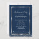 Elegant silver ram och konfetti på marinblå bakgrund.