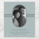 Den här eleganten sparar datumen för vin-etiketterna med ett rundat, mörk blått grått ram som omger ditt personliga foto, med motsvarande geometriskt linjer och modern text på en trendig glasbakgrund för färgad.