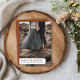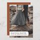 Elegant modern fotokort bröllop Spara datum-design. Mallen har utrymme för ett av dina förlovningsfoton med en enkel klassisk ramöverlägg där du kan lägga till datum för bröllopet och brudens och brudgummens namn. Det finns utrymme på baksidan för att lägga till ytterligare text om det behövs. Använd designverktygen för att anpassa teckensnitt, flytta text, ändra papperstyper och bakgrundsfärg för att skapa din egen unika enastående annonseringsdesign.