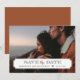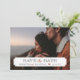 Elegant modern fotokort bröllop Spara datum-design. Mallen har utrymme för ett av dina förlovningsfoton med en enkel klassisk ramöverlägg där du kan lägga till datum för bröllopet och brudens och brudgummens namn. Det finns utrymme på baksidan för att lägga till ytterligare text om det behövs. Använd designverktygen för att anpassa teckensnitt, flytta text, ändra papperstyper och bakgrundsfärg för att skapa en unik enastående tillkännagivande-design.