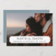 Elegant modern fotokort bröllop Spara datum-design. Mallen har utrymme för ett av dina förlovningsfoton med en enkel klassisk ramöverlägg där du kan lägga till datum för bröllopet och brudens och brudgummens namn. Det finns utrymme på baksidan för att lägga till ytterligare text om det behövs. Använd designverktygen för att anpassa teckensnitt, flytta runt text, ändra papperstyper och bakgrundsfärg för att skapa din egen unika en-av-typ-inbjudan-design.