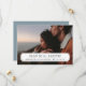 Elegant modern fotokort bröllop Save the Date-design. Mallen har utrymme för ett av dina förlovningsfoton med en enkel klassisk ramöverlägg där du kan lägga till datum för bröllopet och brudens och brudgummens namn. Det finns utrymme på baksidan för att lägga till ytterligare text om det behövs. Använd designverktygen för att anpassa teckensnitt, flytta runt text, ändra papperstyper och bakgrundsfärg för att skapa din egen unika enastående tillkännagivandedesign.