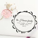 Anpassad elegant ram skript familjenamn returadress gummistämpel. Skapa din egen moderna returadressstämpel för din familj. Designen har ett familjenamn, adress och rund ram. Anpassa med dina uppgifter.
