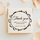 Elegant Ram Skript Tack Bröllop gummi frimärke. Skapa er egen moderna och elegant bröllop tackar er frimärke. Utformningen har Tack för elegant, skript, brud och groom namn, bröllop-datum och en elegant runt ram. Anpassa med dina data.