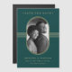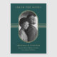 Den här eleganten sparar datumkorten med ett rundat faux guld ram som omger ditt personliga foto, med matchande geometriskt linjer och modern text på en djup grönt.