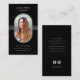 De här affärskorten i eleganten har en rundad ram i silver som omger ditt val av eget foto, med matchande geometriska linjer och modern text på en svart bakgrund. Den här professionellen är perfekt för fotografer, modeller, agent eller alla som föredrar ett foto på sina affärskort. Du kan lägga till din social-medieinformation i bakgrunden.
