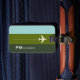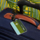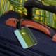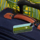 En elegant med bildobjekt på ett vitt flygplan i strimlad bakgrund, personlig med ditt eget namn och initialer, för att identifiera dina tillhörigheter på din nästa resa