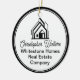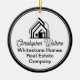 This professional realtor Christmas ornament is custom made with your real estate company name under the modern cursive script and house image. These trendy minimalist white and black realty business promotional gifts feature a house logo image for home builder or realty agent company marketing.