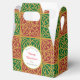 En gåva av elegant anpassningsbar, julkaka eller bakad presentlåda med skript och vintage blockera brev och röd och grönt helgdag med vintagen fleur-de-lis helgdag i golder som återställs från antika plattor.