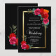 Elegant Red Black Guld Blommigt Bröllop Inbjudningar