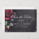 Spara datumet med den här oförglömliga Eleganten Red & Black Ro Gothic Bröllop spara datum med vacker bakgrund med skripttext. Tryck på "Anpassa den här mallen" om du vill lägga till en egen anpassningsbar.