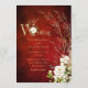 Den vackra vita blommigten sprejas med guld löv för att göra inbjudan sofistikerad och chic. Den röda bakgrunden är underbar. Vackert för vilken säsong som helst.