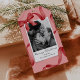 Elegant julmas-märkre med helgdag med en röd bakgrund i snyggten, med ett foto centrerat med ett vackert vattenfärgband och en vacker båge. Fyll i med din familj namn och säsonhälsningarna "god jul".