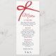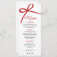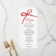This elegant wedding menu features a minimal red bow illustration at the top, paired with modern typography on a clean white background. Perfect for romantic dinners, weddings, bridal showers, or holiday celebrations. Customize the text to match your event details and colors for a timeless and stylish table setting.