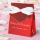 En lyxig vintage röd bröllop-presentväska som skulle göra en underbar bord dekoration vid bröllopsmottagningen. Utformningen har en strålande röd rullning i mönster, och anpassningsbarna på framsidan kan enkelt personlig med dina egna detaljer. Observera att den här rödbröllopsväskan gjordes för att matcha en komplett bröllop-svit, som innehåller matchningsinbjudan, OSA-meddelande och mer som du kan se höger här: https://www.zazzle.com/collections/elegant_red_wedding-119318179366725501