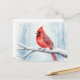 Elegant Red Cardinal Watercolor Winter Snow Vykort
