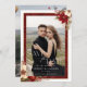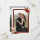 Denna romantiska och klassiska jul- eller vintertema sparar datumdesignen av pulserande röda och vita vinterblommor, gräs, hollbär och rustika kvistar, anpassningsbar modern textgrafik och redigerbar text fält omgiven av en rik röd damm gräns med guld kant. Baksidan har en fotomall och ytterligare fält. färg är anpassadet "Spara datum" i designredigeraren.