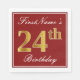 Den här enkla och elegant pappra napkin-designen innehåller ett meddelande som "FirstName's 24:e födelsedagen" (med "24:e" som har en faux-guld-liknande färgning) i en röd färgad fyrkantig yta med en enkel gräns-kontur. Namn är i en text som liknar en text med en vit färgad och kan vara personlig. Napkins som dessa skulle kanske kunna användas i en födelsedagsfest till någon som firar sin tjugofjärde födelsedag. [~Z0000138]