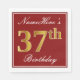 Den här enkla och elegant pappra napkin-designen innehåller ett meddelande som "Namehär's 37:e födelsedagen" (med "37:e" som har en faux-guld-liknande färg) i en röd färgad fyrkantig yta med en enkel gräns-kontur. Namn är i en text som liknar en text med en vit färgad och kan vara personlig. Napkins som dessa kan kanske användas i en födelsedagsfest till någon som firar sin trettiosjunde födelsedag. [~Z0000138]