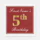 Den här enkla och elegant pappra napkin-designen innehåller ett meddelande som "FirstName's 5th Birthday" (med "5th" som har en faux-guld-liknande färgning) i en röd färgad fyrkantig yta med en enkel gräns-kontur. Namn är i en text som liknar en skript med vit färgad och kan anpassas. Napkins som dessa kan kanske användas i en födelsedagsfest till någon som firar sin femte födelsedag. [~Z0000138]