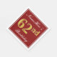 Den här enkla och elegant pappra napkin-designen innehåller ett meddelande som "Namehär's 62:a födelsedagen" (med "62:a" som har en faux-guld-liknande färg) i en röd färgad fyrkantig yta med en enkel gräns-kontur. Namn är i en text som liknar en skript med vit färgad och kan anpassas. Napkins som dessa kan kanske användas i en födelsedagsfest till någon som firar sin sextioandra födelsedag. [~Z0000138]