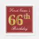 Den här enkla och elegant pappra napkin-designen innehåller ett meddelande som "FirstName's 66 Birthday" (med "66:e" som har en ytliknande guld-färg) i ett fyrkantigt område med röd färgad med en enkel gräns-kontur. Namn är i en text som liknar en text med en vit färgad och kan vara personlig. Napkins som dessa kan kanske användas i en födelsedagsfest till någon som firar sin sextiosjätte födelsedag. [~Z0000138]