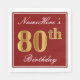 Den här enkla och elegant pappra napkin-designen innehåller ett meddelande som "Namehär's 80 Birthday" (med "80:e" som har en faux guld-liknande färg) i ett fyrkantigt område med röd färgad med en enkel gräns-kontur. Namn är i en text som liknar en skript med vit färgad och kan anpassas. Napkins som dessa kan kanske användas i en födelsedagsfest till någon som firar sin åttioårsdag. [~Z0000138]