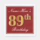Den här enkla och elegant pappra napkin-designen innehåller ett meddelande som "Namn-här's 89:e födelsedag" (med "89:e" som har en ytliknande guld-färg) i en fyrkant med röd färgad med en enkel gräns-kontur. Namn är i en text som liknar en text med en vit färgad och kan vara personlig. Napkins som dessa kan kanske användas i en födelsedagsfest till någon som firar sin åttionionde födelsedag. [~Z0000138]