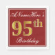 Den här enkla och elegant pappra napkin-designen innehåller ett meddelande som "ANamehär's 95:e födelsedag" (med "95:e" som har en ytliknande guld-färg) i en fyrkantig röd färgad med en enkel gräns-kontur. Namn är i en text som liknar en skript med vit färgad och kan anpassas. Napkins som dessa kan kanske användas i en födelsedagsfest till någon som firar sin 95-årsdag. [~Z0000138]
