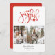 Elegant Glatt manus med julklappar på holly, gåva och stjärnor, helgdag fotokort. Kortfunktioner, två foton på framsidan med tre malltexter linjer för meddelande, namn och år. Kortets baksida är kompletterad med koordinering av solid röd färg-bakgrund.