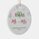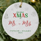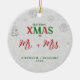 En elegant, vit, röd och grönt julprydnad för ett nytt par med titeln "Vår första jul som Mr och Mrs.", med ett gräs träd och snöflingor täckt i rinestoner och glitter (det är digitala effekter, inte riktiga stenar eller glitter!) och en skakande, vit vinterbakgrund. Ord JULAFTON, som är täckt av rhinestoner (även digitalt!), är en lek på den traditionella grönten och rött. Modern, enkel och elegant.