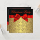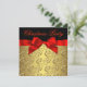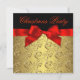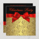 Vackra guld snurrar och ljusröd båge röd och guld inbjudan till julfest. Den här eleganten är en inbjudan till en svart, röd och guld-julfest som enkelt kan anpassas till din aktivitet. Observera - alla kort och inbjudningssymboler som du hittar på Zazzle är tryckta bilder utan egentliga juveler, bogar, upphöjda, präglade eller tillagda delar eller delara.