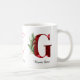 Add a touch of botanical romance to your morning routine with this custom Initial "G" Coffee Mug. Featuring a bold, serif letter "G" filled with a rich red heart pattern and accented with delicate watercolor green leaves, this mug blends classic typography with a modern romantic aesthetic.