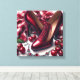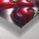 Levande röda, höghälade skor med körsbär och porösa smycken, placerade på en kontrollerad tygbakgrund