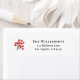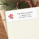 En adressetikett för återlämnande av elegant med skyddad röd hylsbär på vit bakgrund.