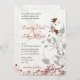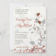 Vintage Red and Grått Lovebird Elegant Whimsical Swirl Romantic Blommigt Wedding Invations with a subtle simple blommigt grått and white blommönster for more elegance. Perfekt för utomhusbondgården Barn eller Woodsy Woodland Garden Wedding Venue. Vintage Love birds bröllopsinbjudningar
