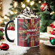 Festive mugg med lyxrött och guld plaid mönster. Den här designen kombinerar tidlös plaid med festlig charm och skapar den som en snyggt för julhelgen.